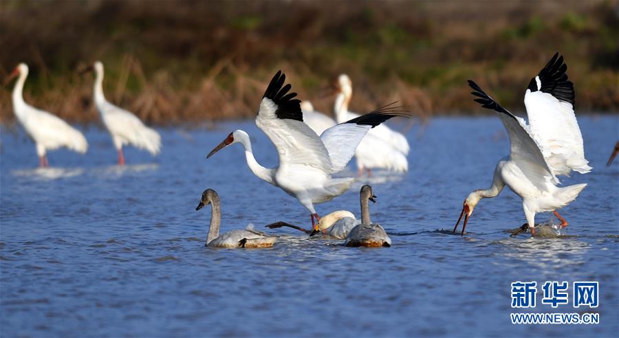 受新一輪北方冷空氣南下影響,江西鄱陽湖越冬候鳥數量激增,一年中最佳的觀鳥時節(jié)到來。江西鄱陽湖國家級自然保護區(qū)管理局近日監(jiān)測顯示,飛抵保護區(qū)的候鳥總數達到16萬只,主要包括大雁、小天鵝、白鶴、東方白鸛等。
