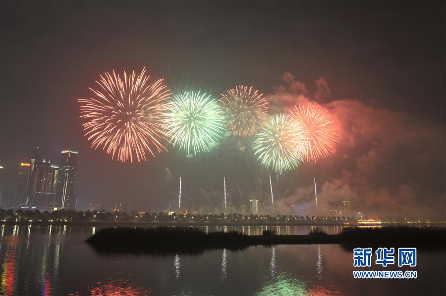 2017年1月1日夜晚,長(zhǎng)沙橘子洲附近湘江上空綻放絢麗焰火。當(dāng)晚,湖南長(zhǎng)沙橘子洲舉行焰火晚會(huì)慶祝新年到來(lái)。整場(chǎng)焰火晚會(huì)主題為“多彩星城、魅力長(zhǎng)沙”,焰火燃放時(shí)間約20分鐘。 新華社記者 龍弘濤攝