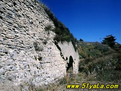現(xiàn)存雁門關(guān),基本保持完整,整個(gè)關(guān)城雄偉壯觀,左右邊墻雉諜,烽墩壕塹俱備,誠有“城隨山勢(shì)轉(zhuǎn),關(guān)并塞云齊”之威。雁門關(guān)西北,約10公里處有廣武城,分新、舊廣武城兩堡。舊廣武城,是一處長方形古代城堡,10多米高的長城,為條石基磚包砌。城堡除垛上女兒墻損壞外,其余保存較好。城頭上有石碑,是公元1725年所立。