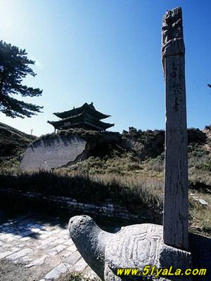 雄關(guān)雁門,居“天下九塞”之首(《呂氏春秋》)。從戰(zhàn)國時(shí)期的趙武靈王起,歷代都把此地看作戰(zhàn)略要地。趙置雁門郡,此后多以雁門為郡、道、縣建制戍守。雁門關(guān)之稱,始自唐初。因北方突厥崛起,屢有內(nèi)犯,唐駐軍于雁門山,于制高點(diǎn)鐵裹門設(shè)關(guān)城,戍卒防守。《唐書·地理志》描述這里“東西山巖峭拔,中有路,盤旋崎嶇,絕頂置關(guān),謂立西徑關(guān),亦曰雁門關(guān)。”后經(jīng)五代十國、宋、遼、金、元約四百余載。元朝設(shè)千戶所,關(guān)城被毀。明代吉安侯陸享于洪武七年(1374)自監(jiān)民工筑新關(guān)于舊關(guān)東北十里處的要道。南距代城縣四十余里,北鄰廣武古城二十一里,地勢(shì)更為險(xiǎn)要。明末清初的著名學(xué)者顧炎武曾親臨此地。他寫道“雁門重關(guān),山巒在演,霞飛云舉,兩山對(duì)峙,其形如門,而飛雁出于其間?!痹撽P(guān)城,周長二里,墻高二丈,石座磚身,雉堞為齒,洞口三重,曰東門、西門、小北門。東門上筑樓臺(tái),曰雁樓,門額嵌石匾一方,橫書“天險(xiǎn)”(即“天險(xiǎn)”)。西門上筑有楊六郎廟,門額嵌石匾一方,橫書“地利”(即“地利”)。小北門未設(shè)頂樓,但磚石結(jié)構(gòu),格外雄固。門額石匾橫刻:“雁門關(guān)”三字。洞門兩側(cè)鑲嵌磚鐫楷書檢聯(lián):“三關(guān)沖要無雙地,丸塞尊崇第一關(guān)?!睎|門外北側(cè)建有“靖邊寺”祀戰(zhàn)國時(shí)代的軍事家趙將李牧。西門外右側(cè)建有關(guān)帝廟。關(guān)城正北置有駐軍營房,東南設(shè)有練兵教場(chǎng)。整個(gè)關(guān)城建筑,虎踞龍盤,雄偉壯觀。明清以后,關(guān)城雖屢有重建。但隨著我多民族統(tǒng)一國家疆域的逐步形成,內(nèi)長城作為“內(nèi)邊”的作用已經(jīng)失去,所屬的雁門雄關(guān)也隨之荒廢?,F(xiàn)在的關(guān)城僅在東門、西門、小北門三個(gè)門洞和靖邊寺前的一對(duì)石獅,一副石旗桿,明鐫李牧碑石一塊,以及寺后的數(shù)株青松。