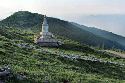 五臺(tái)山的南臺(tái)名喚錦繡峰,又名仙花山,海拔2485米。整個(gè)山勢(shì)像一匹駿馬靜臥群山之中。山峰聳峭,孤立挺拔,如果說(shuō)其他四個(gè)臺(tái)是連襟而立或裙帶關(guān)系的話,南臺(tái)則是貌美如花、孤傲冷峻的公主?!肚鍥錾街尽访枋觯骸吧椒迓柷?,煙光凝翠,細(xì)草雜花,千巒彌布,猶鋪錦然,故以名焉”。山頂寺院叫普濟(jì)寺,內(nèi)供智慧文殊。