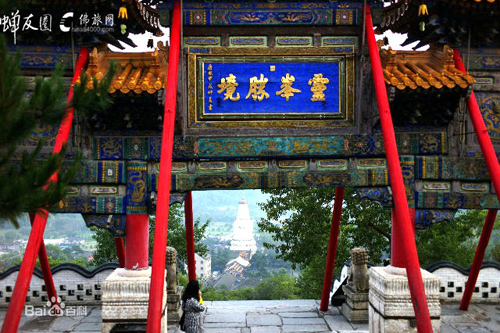 沿一百零八級(jí)石階登高,按照佛家的說(shuō)法,就把人間的一百零八種煩惱踩在腳下了。置身牌樓下,手撫門柱,回身四望,遠(yuǎn)處的山,山上的云,近處的清水河,雄壯多姿的寺廟建筑群,都收入眼中,深感“靈峰勝境”四個(gè)字點(diǎn)得妙。這里,是很好的登高覽勝的觀景點(diǎn)。一九四八年春,黨中央機(jī)關(guān)從延安開赴河北省西柏坡,途中路過(guò)五臺(tái)山,陳毅同志作詩(shī)道:“本不游五臺(tái),迂道時(shí)日緊,至今有余歡,曾踏菩薩頂?!?/p>