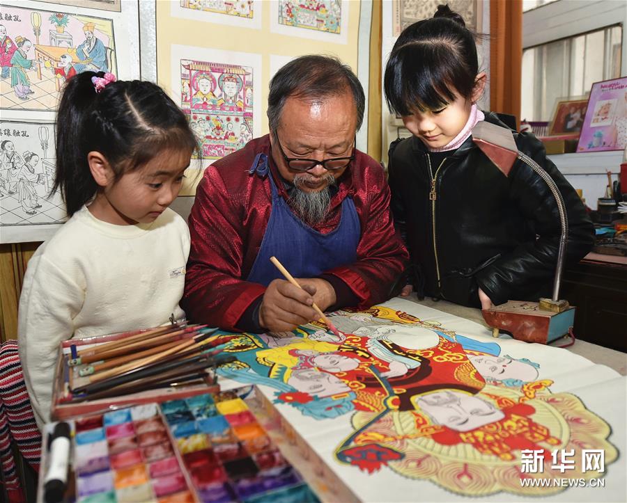 春節(jié)期間,山西省新絳縣的絳州木版年畫傳承人吳百鎖忙得不可開交,來購買“吉祥如意”“雄雞一唱天下白”等主題年畫的顧客絡繹不絕。山西省非物質(zhì)文化遺產(chǎn)絳州木版年畫發(fā)端于宋金,興盛于明清,從選料到雕刻再到上色都非常講究,一幅年畫的制作需要七八道精細工序。隨著時代的變遷,目前已鮮有專職雕刻、印制年畫的匠人。擁有嫻熟雕刻技藝的吳百鎖在傳承傳統(tǒng)工藝的基礎(chǔ)上,積極創(chuàng)作現(xiàn)代題材的作品,希望通過自己的創(chuàng)新讓更多少年兒童了解并愛上木版年畫,讓這門幾乎失傳的技藝綻放新的光彩。新華社記者 曹陽 攝