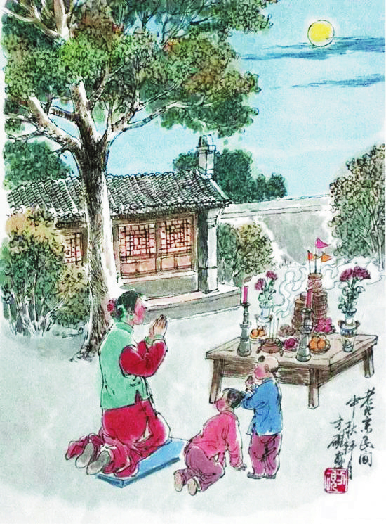 中秋祭月始于先秦,最初是一種皇室禮儀,后演變成以“家庭團(tuán)圓”為主題的祭祀儀式。早在周朝,帝王就會(huì)于春分祭日、夏至祭地、秋分祭月、冬至祭天,故《禮記》中載“天子春朝日,秋夕月。朝日以朝,夕月以夕”。秦漢時(shí)期,祭月在皇室禮儀中繼續(xù)傳承,秦始皇祭日于成山,祭月于萊山,漢武帝時(shí)則“夕夕月則揖”,行朝日夕月之禮。明嘉靖年間在北京修建的夕月壇,專供天子在夜晚祭祀月神,這就是現(xiàn)在的北京月壇公園。隨著時(shí)間的推移,原先為朝廷及上層貴族所奉行的祭月禮儀逐漸流傳到民間,成為一種大眾化的民俗活動(dòng)延續(xù)下來。同時(shí),祭月的日子也由秋分日移到了離秋分最近的滿月日——中秋。