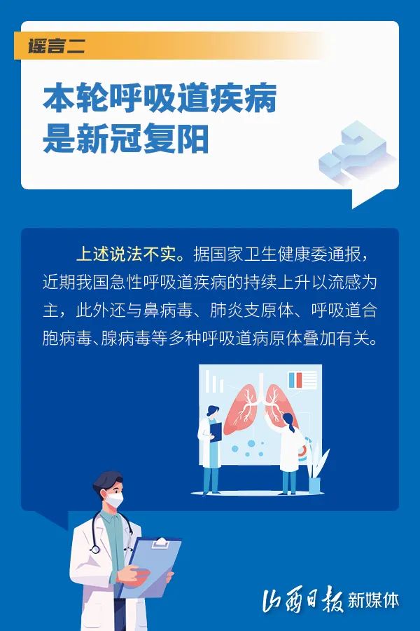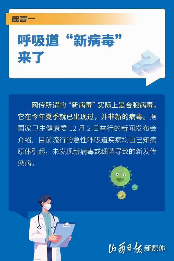 近期,呼吸道疾病呈現(xiàn)高發(fā)態(tài)勢。個(gè)別不實(shí)信息趁機(jī)傳播擴(kuò)散,誤導(dǎo)公眾認(rèn)知。特此澄清關(guān)于呼吸道疾病的5個(gè)謠言,幫助大家知曉呼吸道疾病的基本常識,做好健康監(jiān)測及預(yù)防措施。閱讀、收藏、轉(zhuǎn)發(fā)吧!