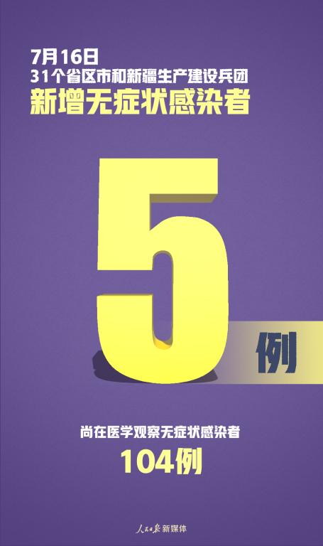 31個?。ㄗ灾螀^(qū)、直轄市)和新疆生產(chǎn)建設(shè)兵團報告新增無癥狀感染者5例(境外輸入2例);當(dāng)日無轉(zhuǎn)為確診病例;當(dāng)日解除醫(yī)學(xué)觀察5例(境外輸入4例);尚在醫(yī)學(xué)觀察無癥狀感染者104例(境外輸入79例)。