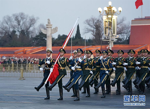 1月1日晨,北京天安門(mén)廣場(chǎng)舉行隆重的升國(guó)旗儀式。 新華社記者 鞠煥宗 攝