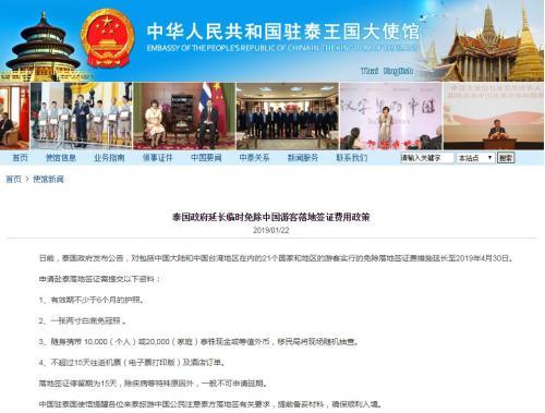 日前,泰國(guó)政府發(fā)布公告,對(duì)包括中國(guó)大陸和中國(guó)臺(tái)灣地區(qū)在內(nèi)的21個(gè)國(guó)家和地區(qū)的游客實(shí)行的免除落地簽證費(fèi)措施延長(zhǎng)至2019年4月30日。