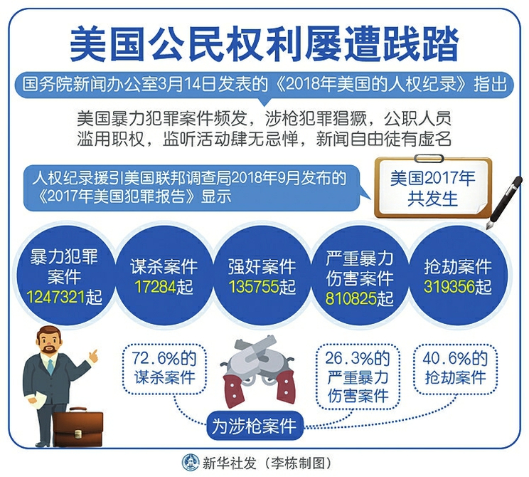 國務(wù)院新聞辦公室14日發(fā)表《2018年美國的人權(quán)紀(jì)錄》《2018年美國侵犯人權(quán)事記》,對美國侵犯人權(quán)的狀況進(jìn)行揭露。