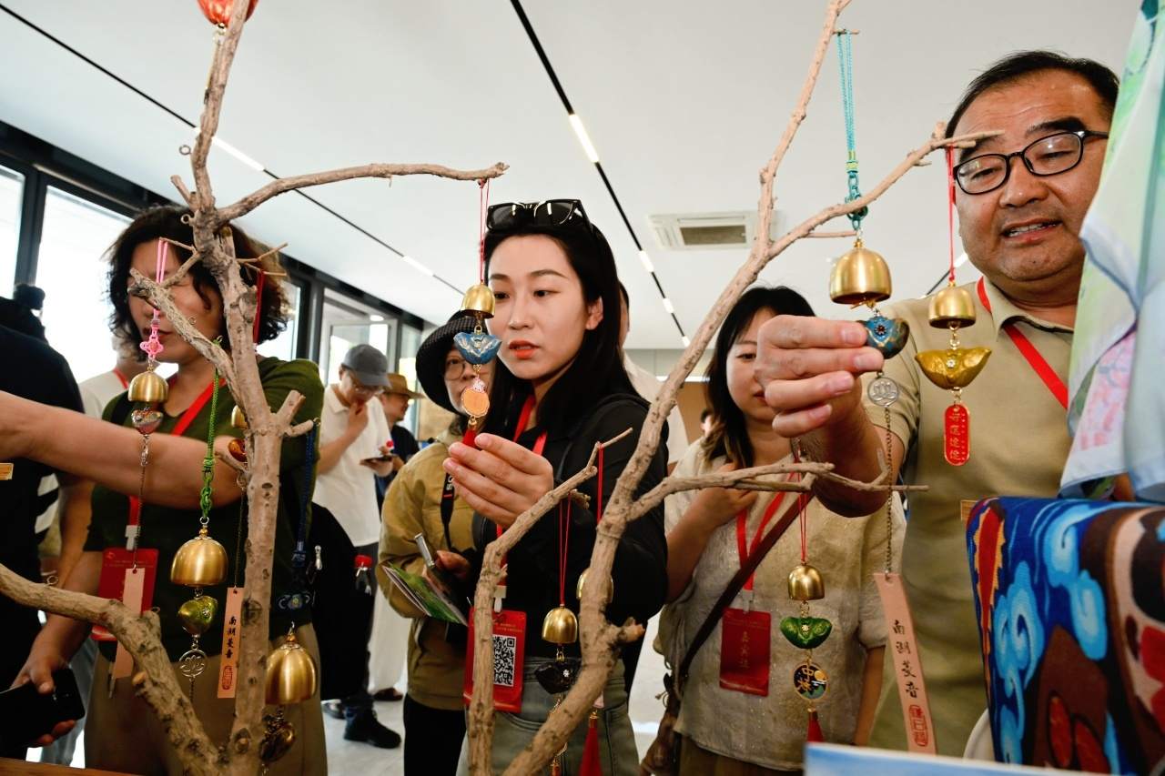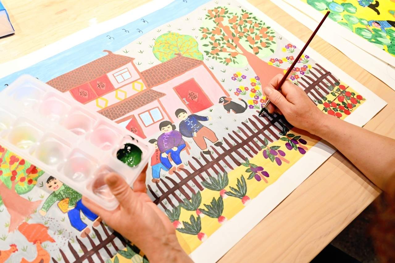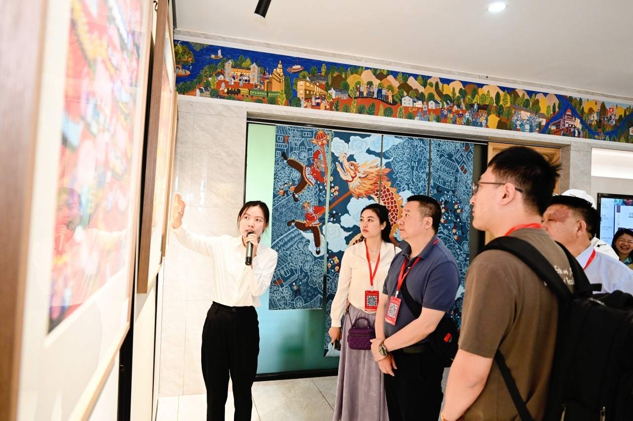 在農民畫藝術展示空間,記者們在村民的農民畫作品中感受到他們濃烈的幸福感與獲得感;“假日農民畫非遺課堂”、農民畫熱轉印體驗等一系列研學課程、體驗項目的開展,又讓大家真切體會到農民畫與產業(yè)的有機融合;一樓大廳“驛站”里,基于秀洲農民畫開發(fā)的各式文創(chuàng)產品令人忍不住就想“買買買”……