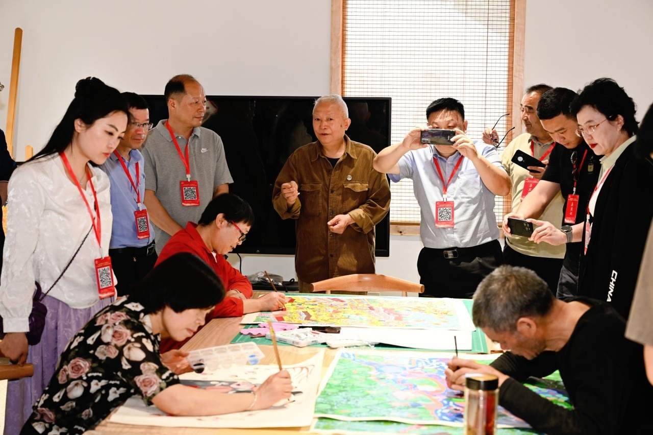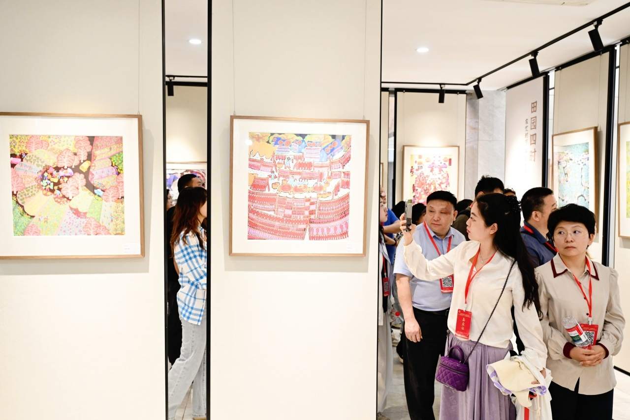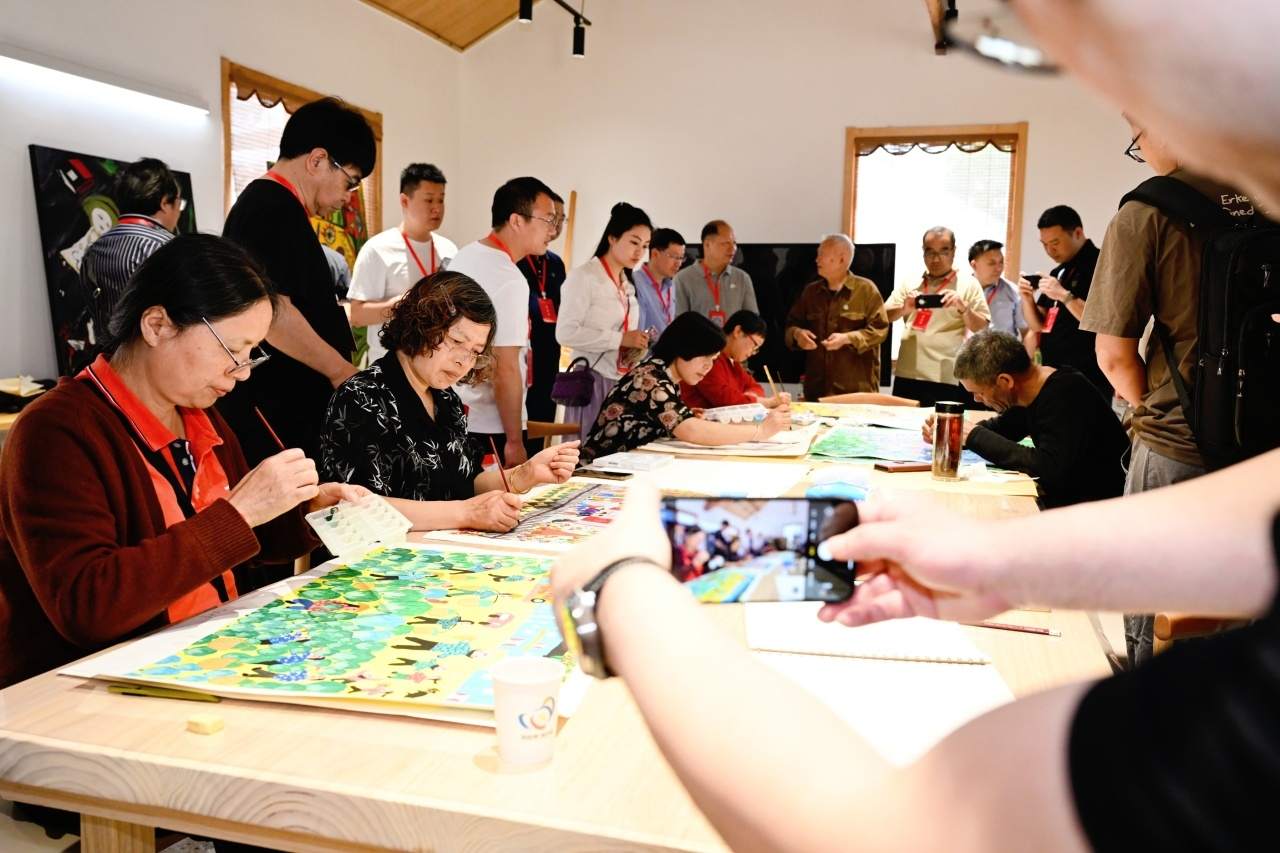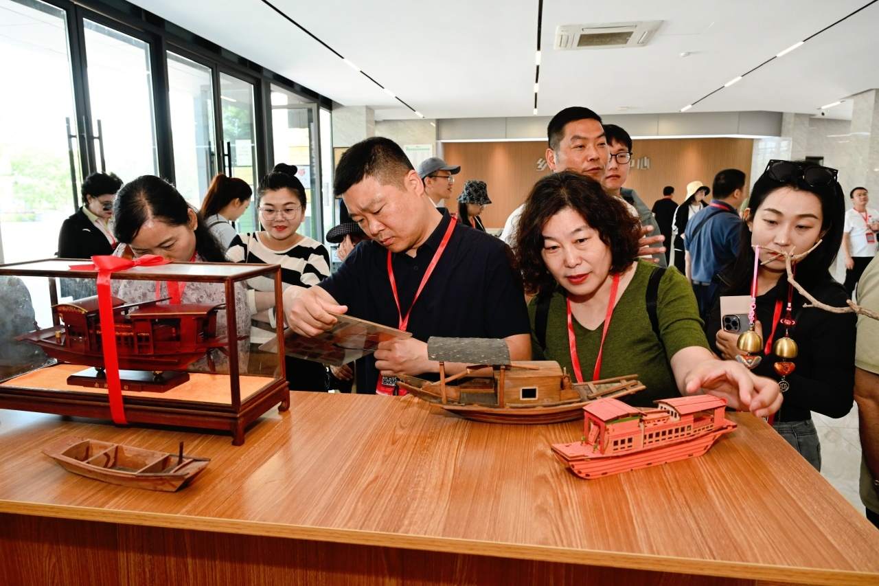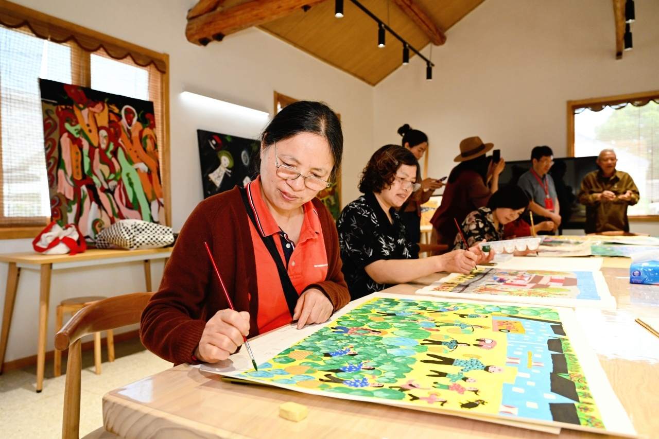 村內傳承著農民畫、糖糕版雕刻技藝、造船技藝為代表的省市級非物質文化遺產,建設有中國現(xiàn)代民間繪畫秀洲創(chuàng)作基地、村口集市、千畝棧道、糖糕館、船匠技藝館等,還引進了沐杭咖啡、颶風摩托艇俱樂部、原膳餐飲等特色產業(yè),讓記者們清楚地看見藝術為鄉(xiāng)村賦能的真實過程。