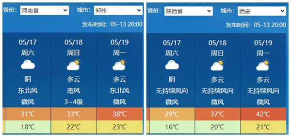 省會(huì)城市中,西安、鄭州18日至19日最高氣溫也將達(dá)到38℃以上。