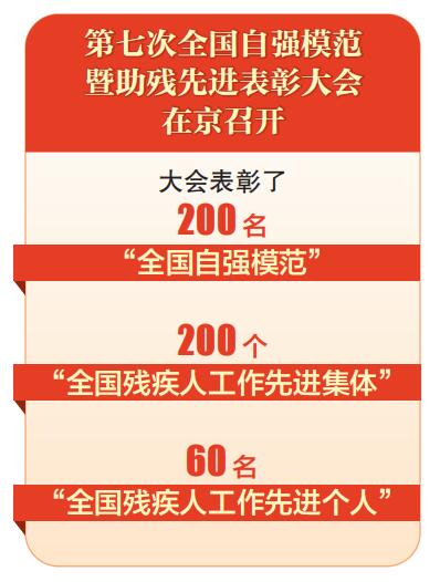 第七次全國自強(qiáng)模范暨助殘先進(jìn)表彰大會16日在北京人民大會堂召開。200名全國自強(qiáng)模范、200個全國殘疾人工作先進(jìn)集體和60名全國殘疾人工作先進(jìn)個人受到表彰。