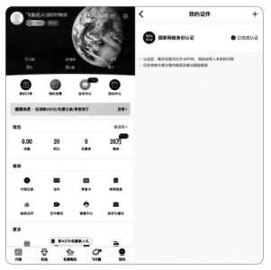 以某航旅App為例,點(diǎn)擊“國家網(wǎng)絡(luò)身份認(rèn)證”圖標(biāo)進(jìn)行關(guān)聯(lián)登錄,便可以不再輸入身份證號碼。登錄完成后,點(diǎn)擊證件可看到顯示已用國家網(wǎng)絡(luò)身份認(rèn)證完成認(rèn)證。