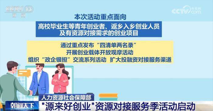 央視網(wǎng)消息:記者從人力資源社會保障部了解到,“源來好創(chuàng)業(yè)”資源對接服務季活動定于7月至9月在全國各地同步開展,通過搭建平臺、拓展渠道、集聚資源促進高質量創(chuàng)業(yè)。