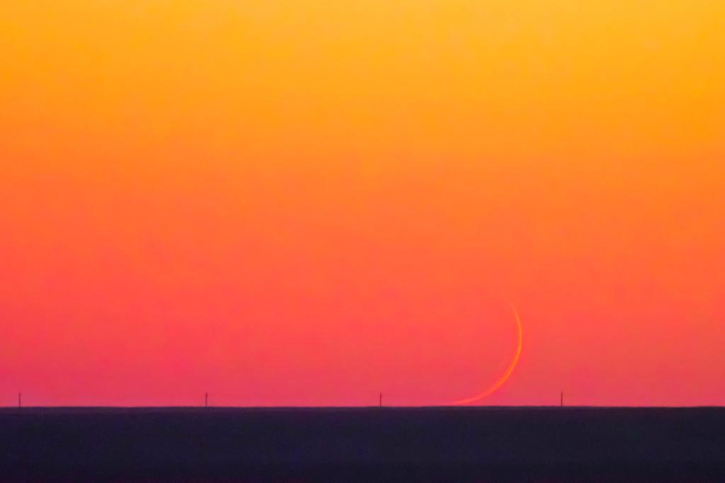 2024年8月7日,在北京北海公園拍攝的蛾眉月。(鐘奕 攝) 如果把本年度的蛾眉月按照大小“排排個(gè)兒”,4月1日的蛾眉月是最大的,9月26日的蛾眉月是最小的。 修立鵬建議,25日和26日的月相變化不大,這兩天日落時(shí)分,感興趣的公眾可朝向西南方向觀測(cè),彎彎的蛾眉月像一個(gè)反寫的英文字母“C”。