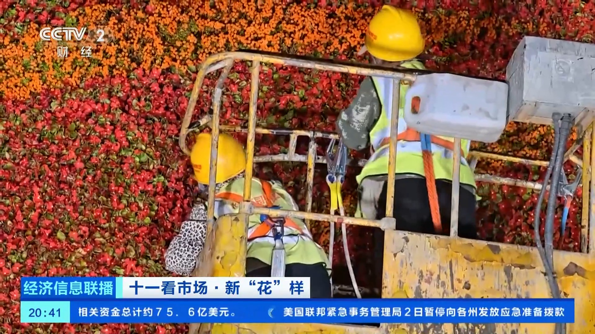 總臺央視記者 王聞聰:今年,在花壇的底部布置了一個直徑達45米的向日葵圖案,寓意朵朵葵花向太陽。這里面的花沒有那么大,但是,有兩種具有自主知識產(chǎn)權(quán)的花,分別是一串紅“奇跡”和小菊“絢秋星光”。他們是經(jīng)過了近10年時間,雜交選育得到的新優(yōu)品種,這兩種植物都是已經(jīng)能夠大面積應用在園林綠化上的品種,在大花籃的花壇應用總量近3萬株。