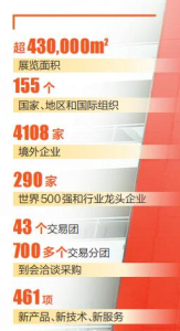 展覽面積超過43萬平方米,155個國家、地區(qū)和國際組織參與,4108家境外企業(yè)參展,290家世界500強和行業(yè)龍頭企業(yè)參展……在八方來客眼中,進(jìn)博會越長越“高”、越來越“壯”。