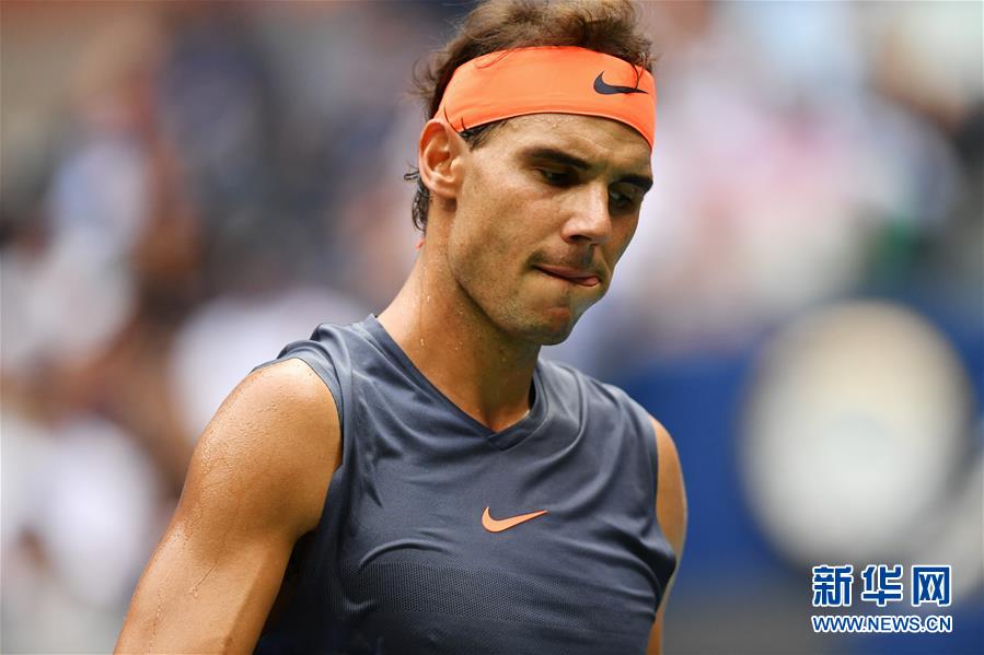 9月7日,納達(dá)爾在比賽中。 當(dāng)日,在2018美國網(wǎng)球公開賽男單半決賽中,西班牙選手納達(dá)爾在大比分0比2落后時(shí)因傷退賽,阿根廷選手德爾波特羅晉級(jí)決賽。 新華社記者劉杰攝