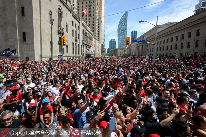 人民網(wǎng)北京6月18日電(楊磊) 北京時間6月17日,NBA新科總冠軍多倫多猛龍隊舉行了奪冠慶典,大約有200萬球迷參加了這次慶典。