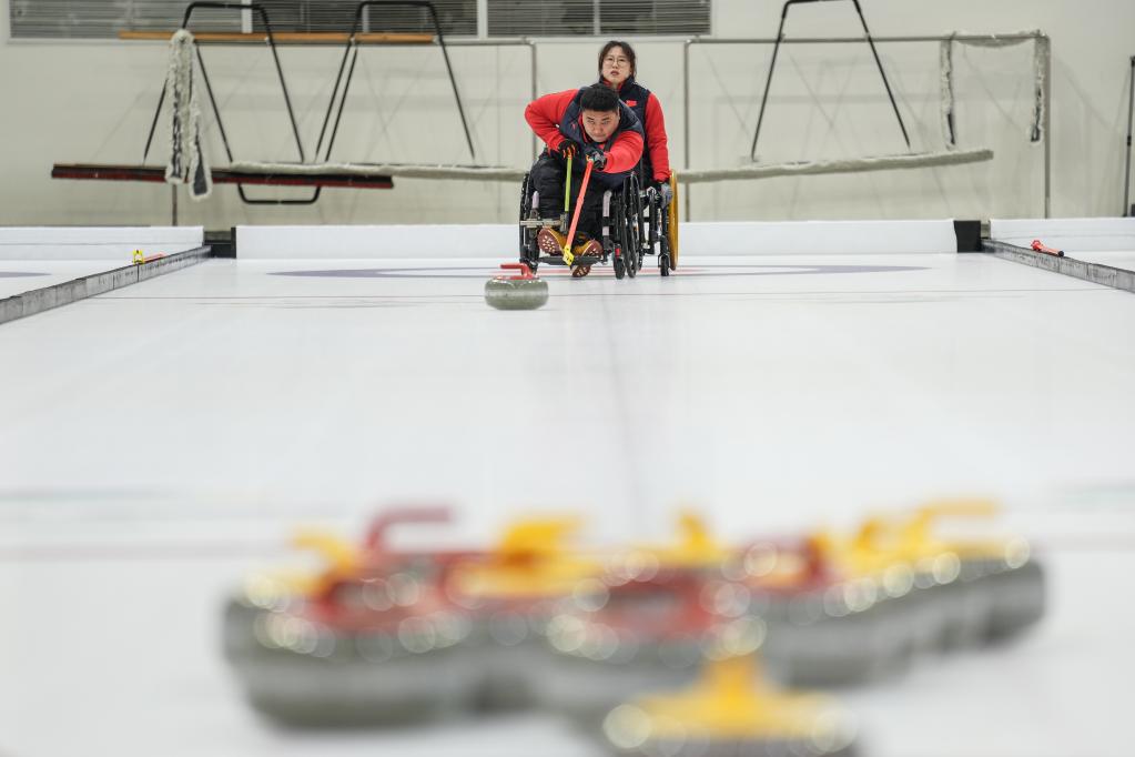 2018年平昌冬奧會(huì),中國輪椅冰壺隊(duì)拿到中國冬殘奧會(huì)歷史首金。為備戰(zhàn)北京冬殘奧會(huì),隊(duì)伍近些年來一直加緊訓(xùn)練。“平昌奪冠已成歷史,從零開始奔向北京?!痹诒本╉樍x的國家殘疾人冰上運(yùn)動(dòng)比賽訓(xùn)練館冰壺館中,這條標(biāo)語高懸,顯得格外醒目。