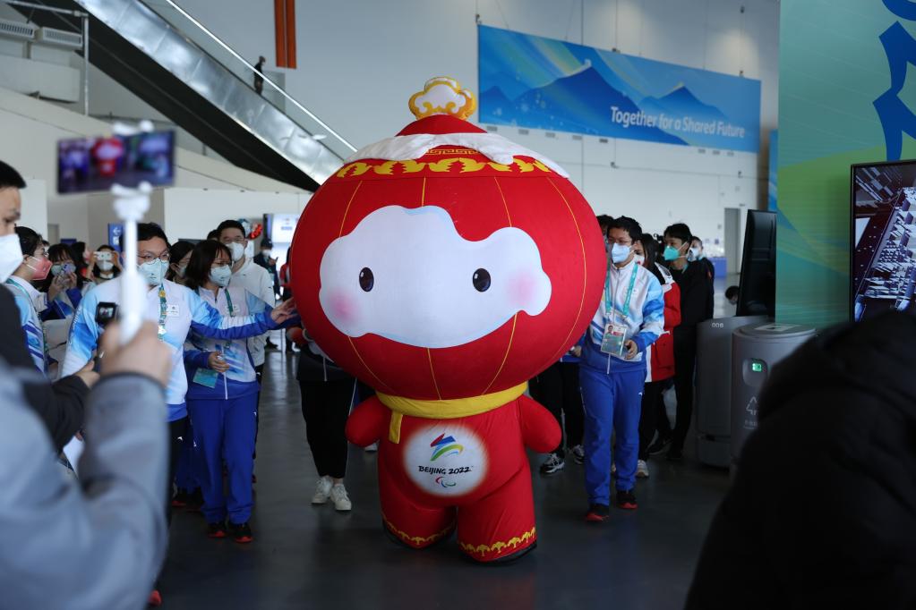 3月8日,北京2022年冬殘奧會吉祥物“雪容融”出現(xiàn)在主媒體中心。新華社發(fā)(胡星宇攝)