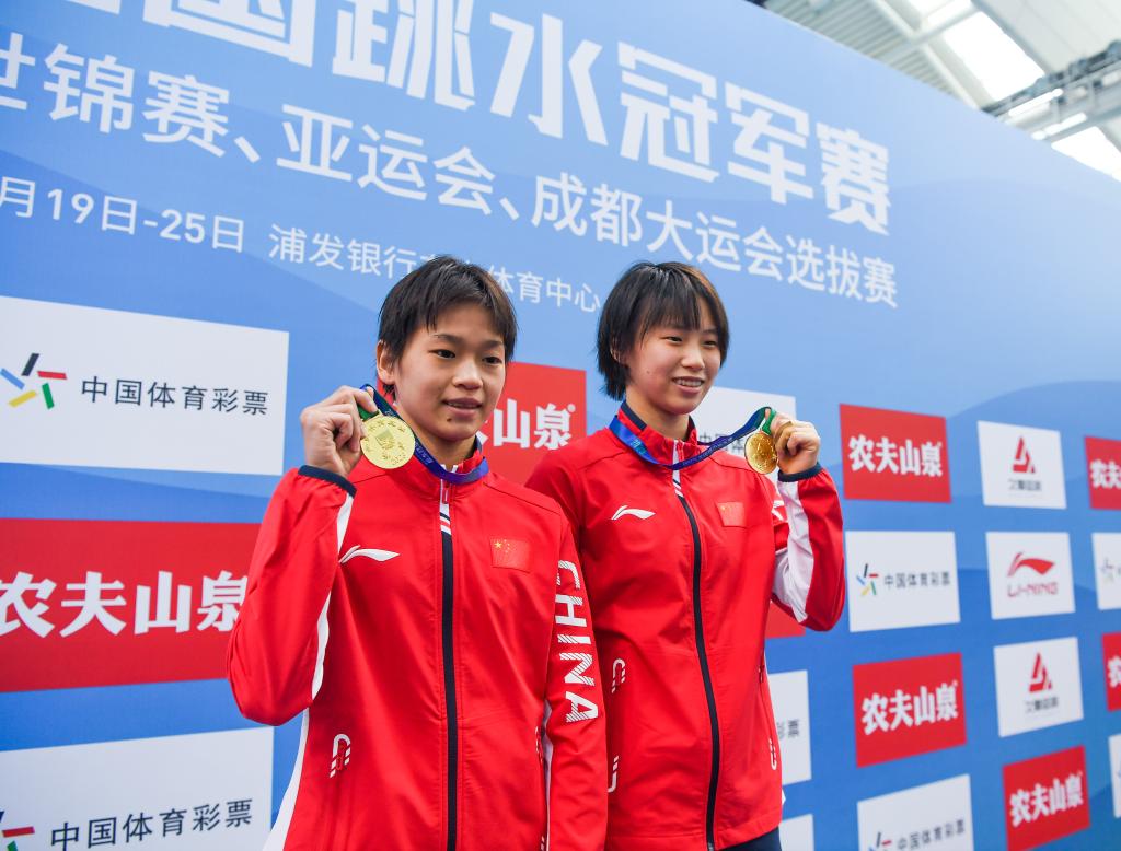 新華社上海3月19日電(記者 許東遠(yuǎn))19日,2023年全國(guó)跳水冠軍賽在上海開(kāi)賽。全紅嬋與陳芋汐搭檔奪得女子雙人10米跳臺(tái)冠軍,廣東隊(duì)包攬男子雙人3米跳板金銀銅牌,陳藝文和老搭檔昌雅妮拿下女子雙人3米跳板金牌。