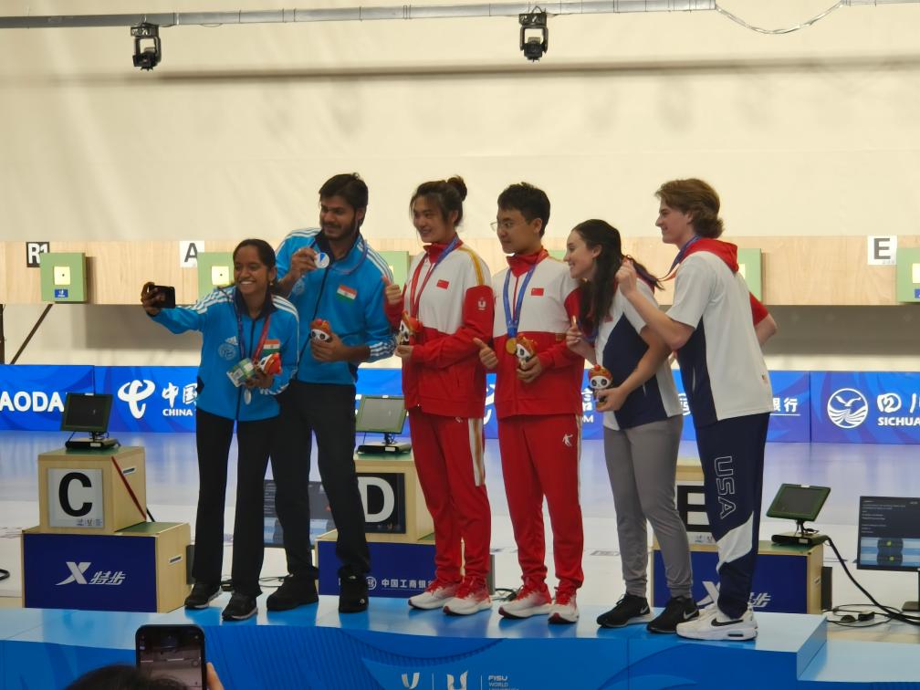 新華社成都8月2日電(記者劉寧、王春燕)成都大運(yùn)會(huì)開(kāi)賽以來(lái),中國(guó)大學(xué)生體育代表團(tuán)捷報(bào)頻傳。2日,中國(guó)隊(duì)有9枚金牌入賬,以36金12銀12銅的成績(jī)繼續(xù)領(lǐng)跑金牌榜。射擊賽場(chǎng)上演暖心一幕,印度女選手瓦拉里萬(wàn)在全場(chǎng)的祝福聲中度過(guò)了一個(gè)終生難忘的生日。