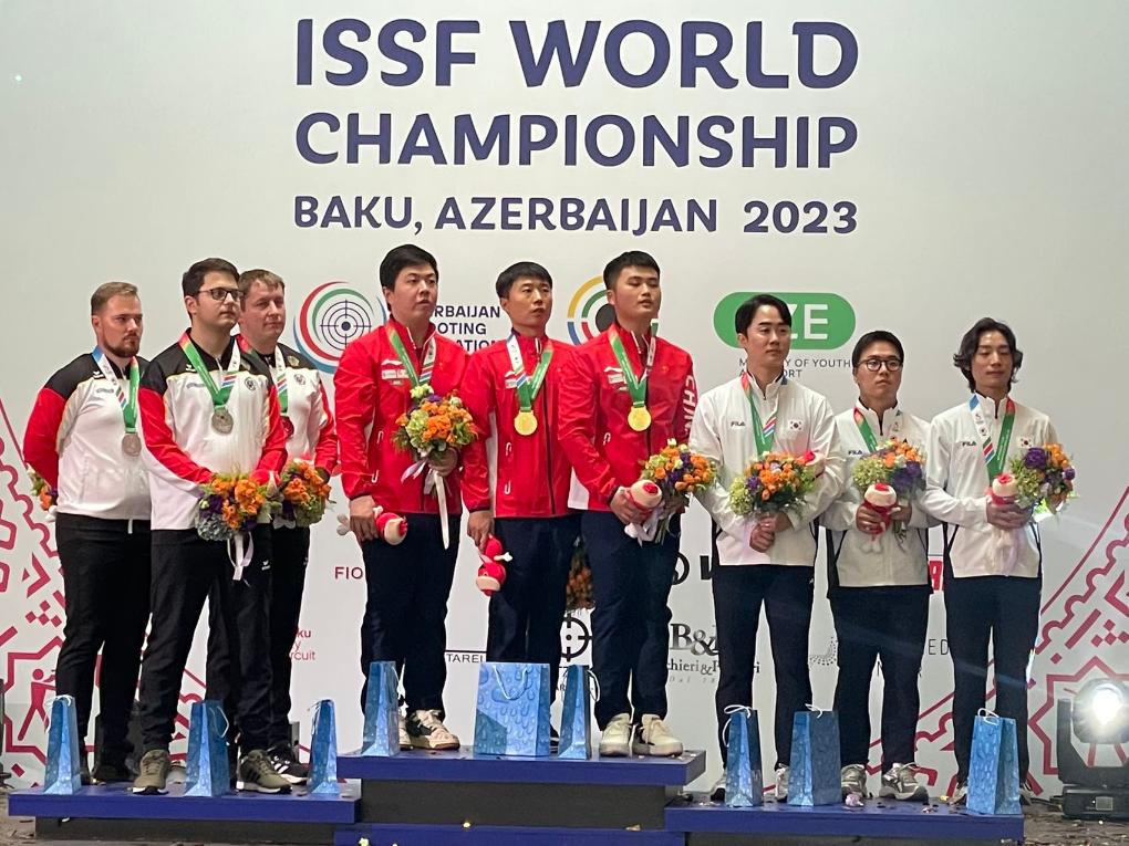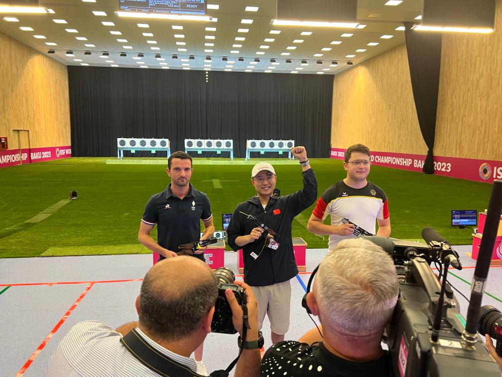 該項(xiàng)目比賽中,中國隊(duì)老將新人都有出色發(fā)揮。首次參加國際比賽的王鑫杰資格賽打出588環(huán)排名第一,與位居次席的李越宏攜手晉級(jí)決賽。他們兩人與劉楊攀組成的中國隊(duì)團(tuán)體成績1756環(huán),追平了世界紀(jì)錄,足足領(lǐng)先亞軍德國隊(duì)16環(huán)。
