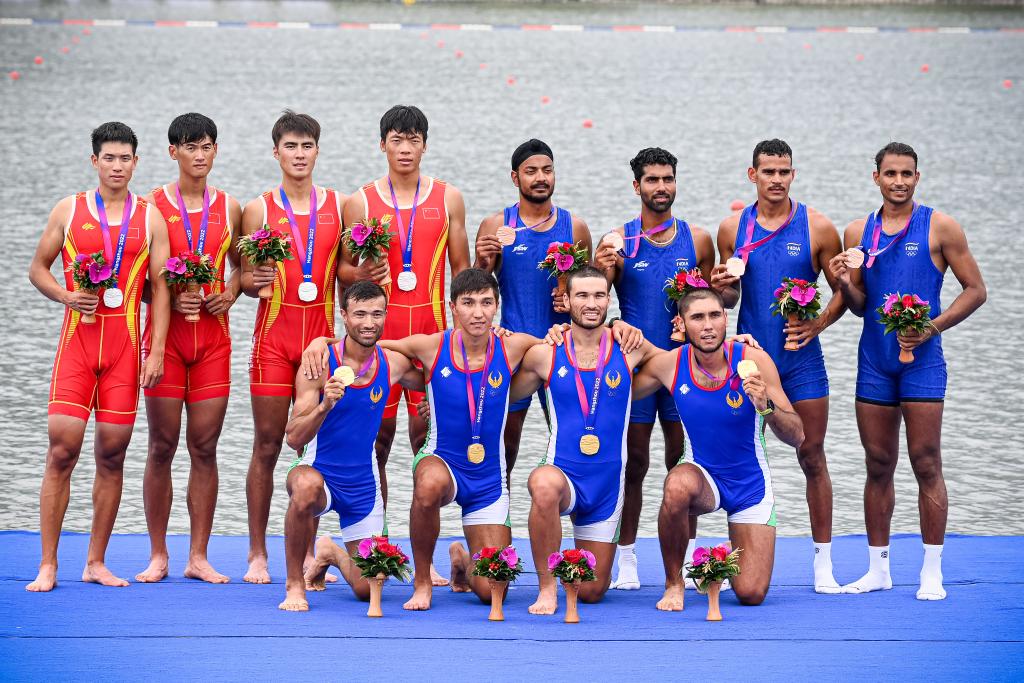 杭州亞運(yùn)會(huì)賽艇項(xiàng)目于25日收官,共決出14枚金牌,中國(guó)隊(duì)在參加的13個(gè)單項(xiàng)中收獲11枚金牌和2枚銀牌,烏茲別克斯坦隊(duì)獲得2枚金牌,中國(guó)香港隊(duì)獲得1枚金牌。