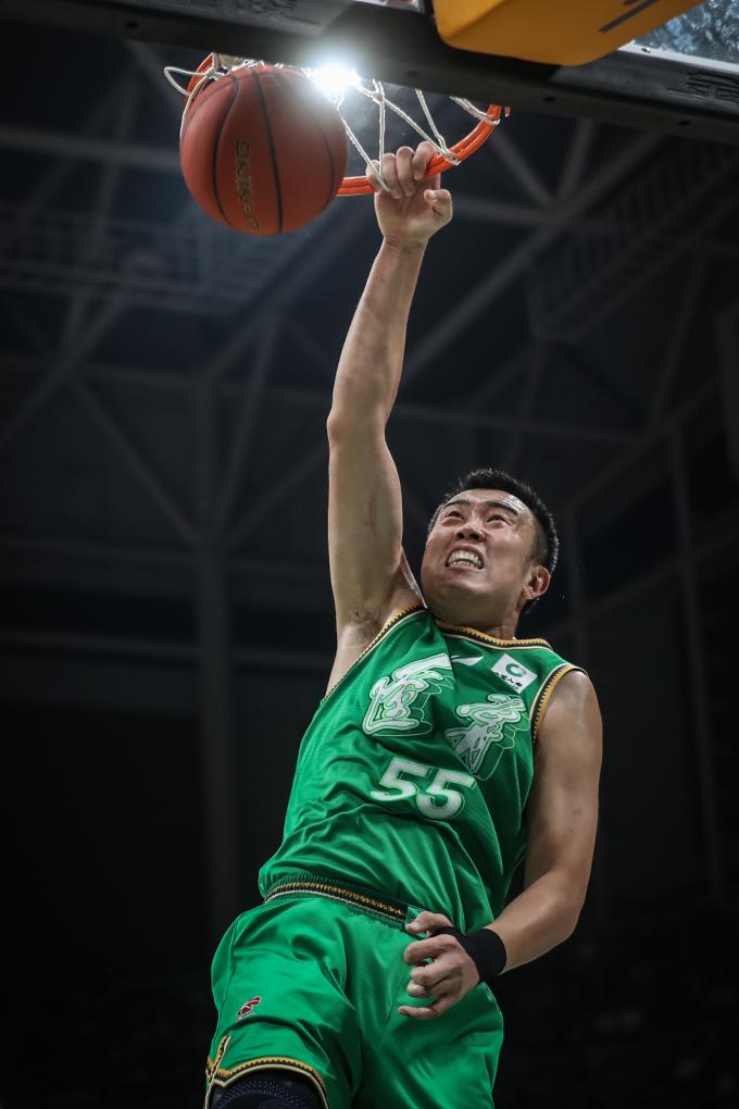 11月15日,遼寧隊球員韓德君在比賽中扣籃。新華社記者 潘昱龍 攝