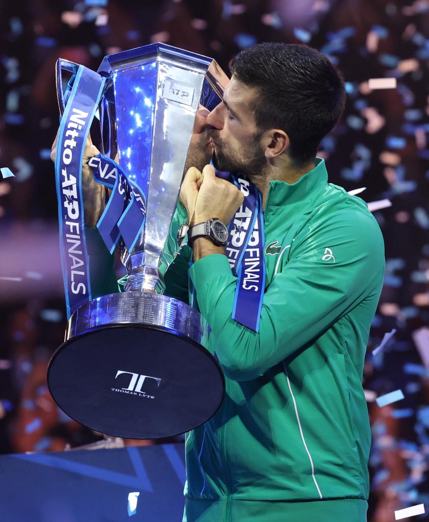 11月19日,焦科維奇親吻獎杯。新華社發(fā)(阿爾貝托·林格里亞攝)