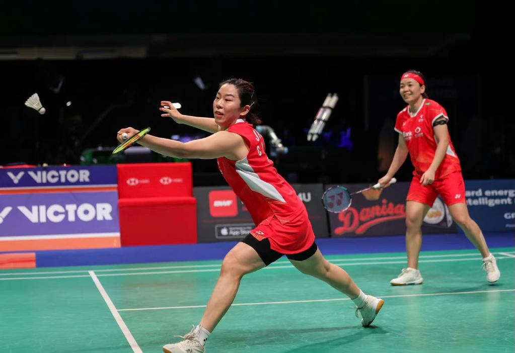 女雙世界排名第一的“凡塵組合”僅用時(shí)37分鐘,以兩個(gè)21:13戰(zhàn)勝中國臺(tái)北組合許雅晴/林琬清,晉級(jí)下一輪。