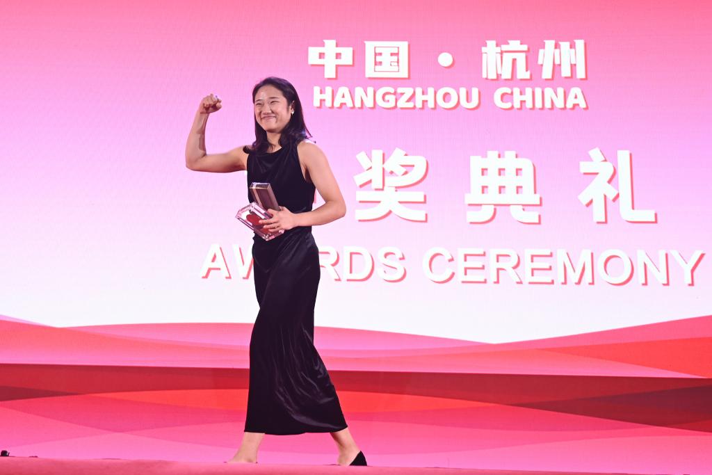 12月11日,獲得年度最佳女運動員的韓國選手安洗瑩在頒獎儀式上。新華社記者 黃宗治 攝