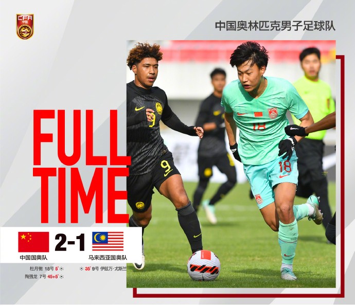 開場后,中國國奧隊就采取高位逼搶。第5分鐘,杜月徵接陶強(qiáng)龍開出的前場任意球破門,打破僵局。第34分鐘,巴沙遠(yuǎn)射擊中橫梁,尤斯蘭補(bǔ)射破門幫助馬來西亞隊扳平比分。上半時補(bǔ)時階段,中國隊獲得禁區(qū)內(nèi)間接任意球機(jī)會,陶強(qiáng)龍破門,將比分改寫為2:1。易邊再戰(zhàn),17歲小將王鈺棟替補(bǔ)登場,首次代表中國國奧隊參賽。雙方在下半場未取得進(jìn)球,2:1的比分保持到了終場。