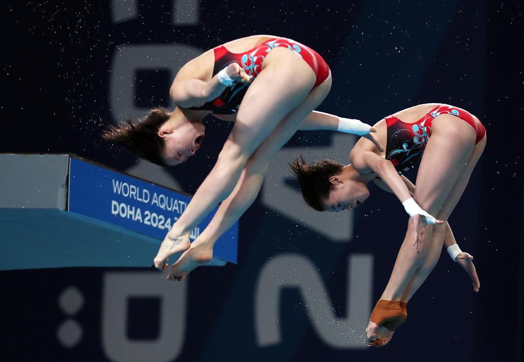 決賽中,與2022布達佩斯和2023福岡兩屆世錦賽情況相似,中國“王牌組合”占據(jù)絕對優(yōu)勢。陳芋汐/全紅嬋5次試跳,每一輪都得到最高分,一路領跑,最終以362.22分折桂,實現(xiàn)世錦賽“三連冠”。