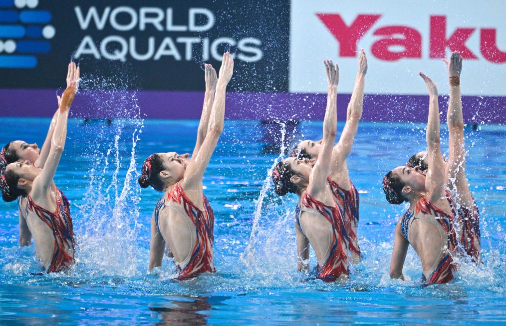 花樣游泳集體技術(shù)自選決賽中,作為預賽第一名的中國隊最后出場,以一套主題為《速度與激情》的動作再次征服裁判,得到全場最高的299.8712分,力壓西班牙隊和日本隊摘金。這是中國花游隊在本屆世錦賽上的第四枚金牌。女單自由自選決賽中,徐匯妍最終名列第四名,與獎牌擦肩。