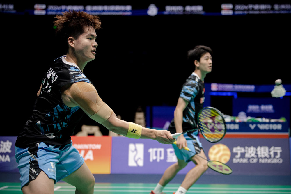 4月14日,梁偉鏗(左)/王昶在比賽中。新華社記者 江漢 攝