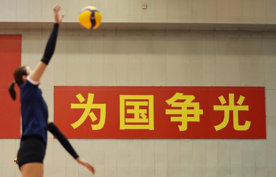 2月22日,中國女排球員在訓練中。新華社記者賈浩成攝