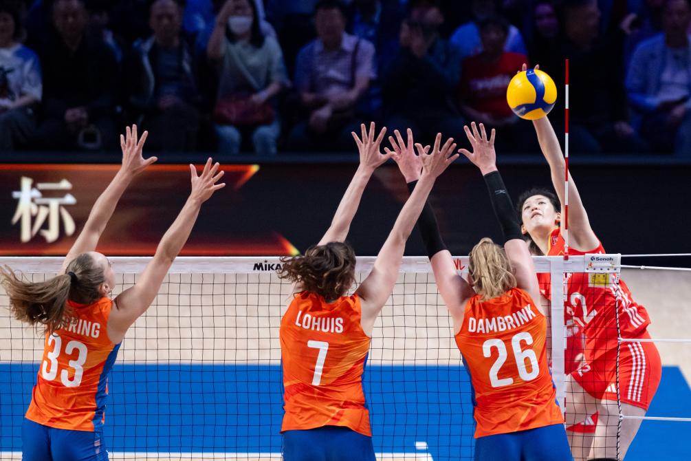 首局比賽中國隊失誤較多,荷蘭隊取得13:6的領先。中國隊請求暫停后迅速調(diào)整狀態(tài),一度將分差縮小至3分,但最終還是以21:25告負。第二局,中國隊在開局落后的情況下依靠多點進攻在后半段反超比分,以25:23扳平大比分。士氣大振的中國女排在接下來的比賽中掌握了主動,進攻更加積極,以25:23、25:21連下兩局贏得勝利。
