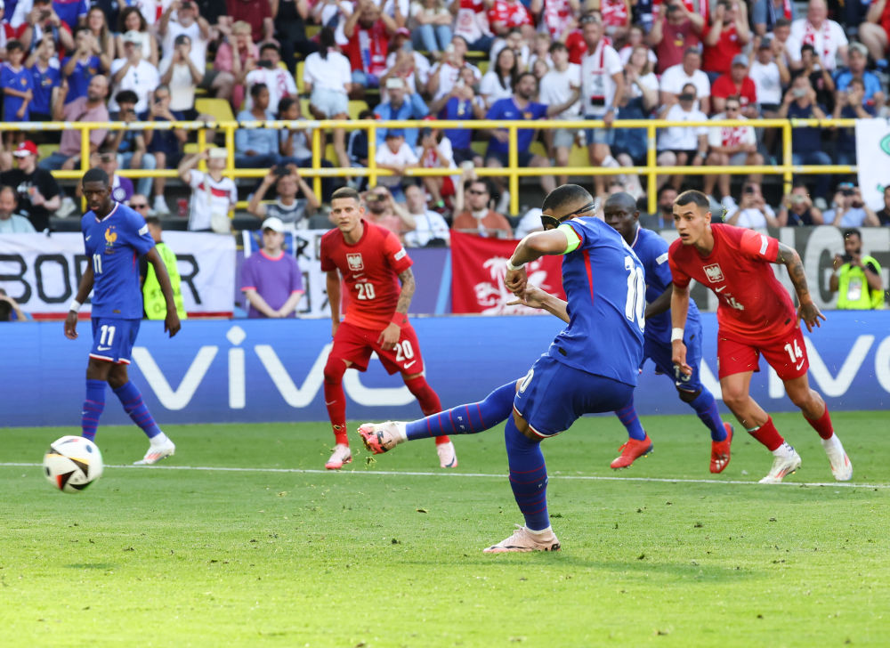法國(guó)頭號(hào)球星姆巴佩本場(chǎng)復(fù)出成為全場(chǎng)焦點(diǎn),他在下半場(chǎng)通過(guò)點(diǎn)球建功,打入了個(gè)人在歐錦賽上的首粒進(jìn)球。比賽尾聲階段,波蘭隊(duì)同樣獲得一粒點(diǎn)球,萊萬(wàn)多夫斯基主罰命中將比分定格為1:1。