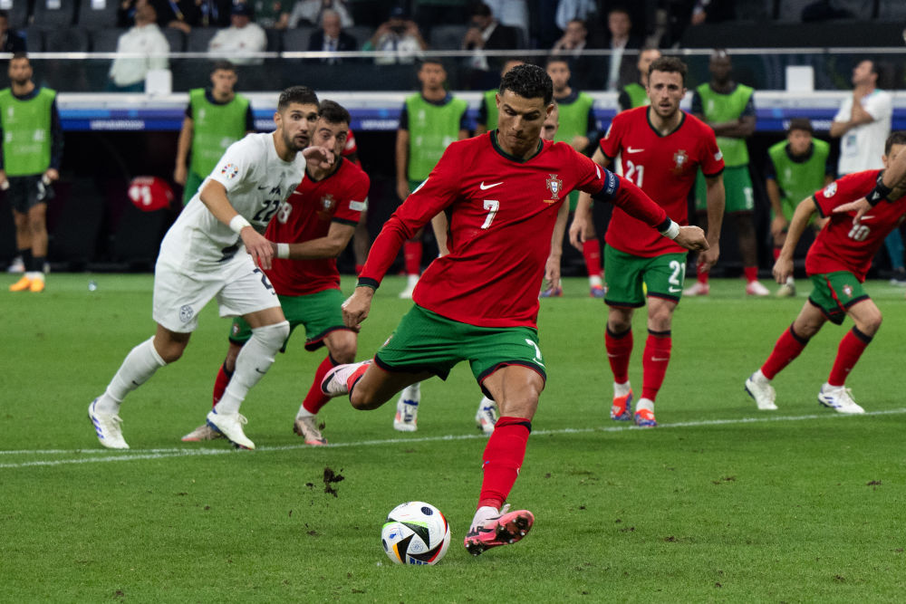 7月1日,C羅在比賽中主罰點(diǎn)球。新華社記者 肖藝九 攝