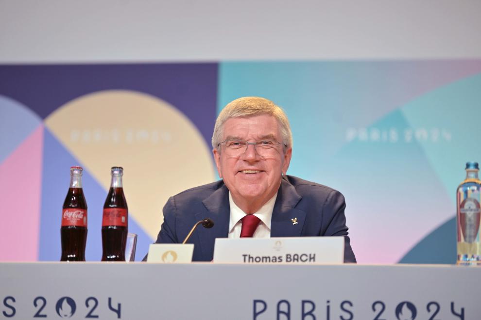 7月23日,國(guó)際奧委會(huì)主席巴赫在新聞發(fā)布會(huì)上。當(dāng)日,第142屆國(guó)際奧林匹克委員會(huì)全會(huì)首日新聞發(fā)布會(huì)在法國(guó)巴黎舉行。新華社記者 侯昭康 攝