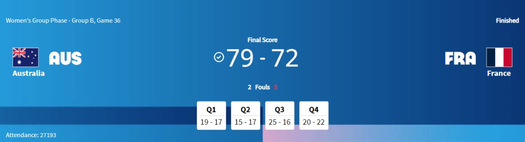 中新網(wǎng)北京8月5日電(記者 劉星晨)北京時間5日凌晨,巴黎奧運會女籃小組賽全部結(jié)束。在最后一場比賽中,澳大利亞女籃79:72戰(zhàn)勝東道主法國女籃。本場取勝后,澳大利亞女籃以2勝1負的戰(zhàn)績出線。