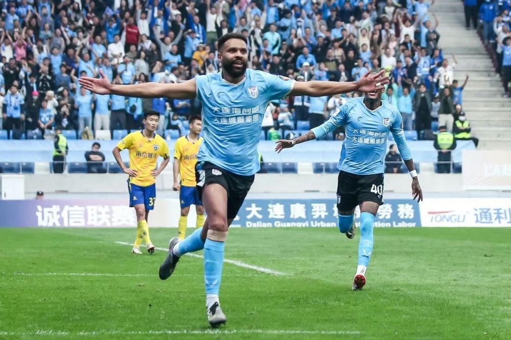 開場后,雙方展開激烈爭奪。上半場補時階段,大連英博隊外援科特尼克送出助攻,卡蘭加抓住機會頭球破門,為主隊取得領(lǐng)先。