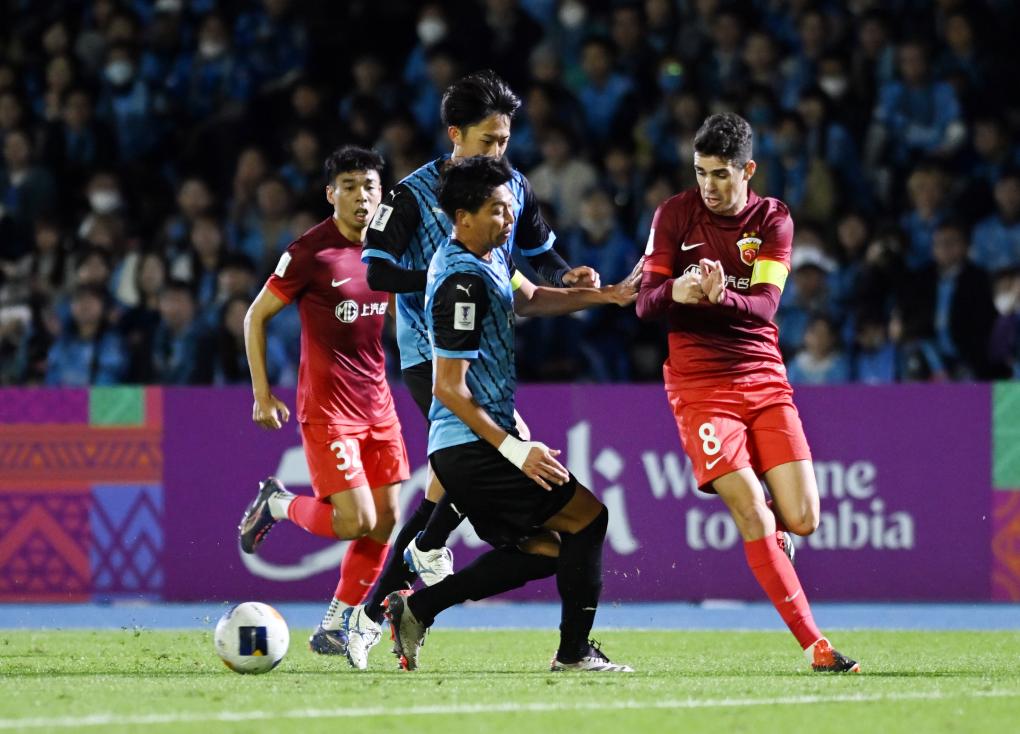 上半場川崎前鋒隊多次利用前場逼搶和邊路傳中創(chuàng)造機會,完全占據(jù)場上主動。第12分鐘,川崎前鋒隊憑借老將家長昭博禁區(qū)內的凌空抽射先拔頭籌。僅1分鐘后,上海海港隊球門再度失守,瀨川祐輔補射破門,為主隊擴大領先優(yōu)勢。第33分鐘,川崎前鋒隊的范韋爾梅斯克肯推射入網(wǎng),半場結束上海海港隊0:3落后。