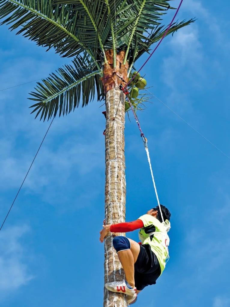 如果你對巴黎奧運(yùn)會上用時最短的項(xiàng)目——速度攀巖意猶未盡,在本屆運(yùn)動會上,可以關(guān)注速度攀巖“海南版”——攀椰競速。