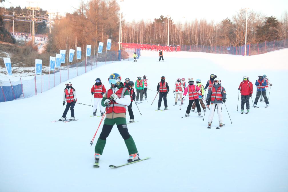 室外滑雪場上,400余名師生參加了滑雪課教學(xué)、滑雪技能展示以及長春學(xué)生滑雪錦標(biāo)賽。長春冰雪新天地的冰場上,來自長春市7所學(xué)校的700余名學(xué)生開展了短道速滑、冰球等冰上競技以及抽冰尜、滑冰車等冰上游戲活動。雪地上,300余名學(xué)生參加了雪地足球、雪合戰(zhàn)、雪上拔河等運(yùn)動。