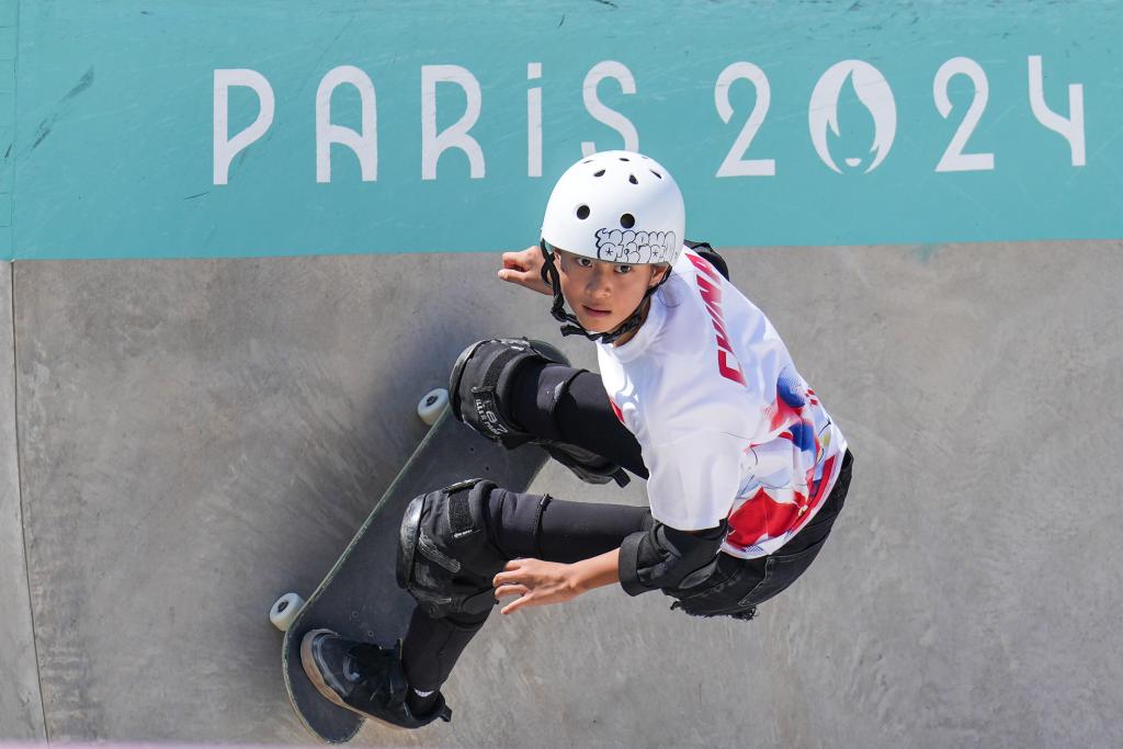 這是2024年8月6日,鄭好好在巴黎奧運會滑板女子碗池預賽中。新華社記者 杜宇 攝