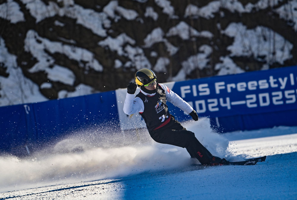 2月24日,中國(guó)隊(duì)齊廣璞在比賽中。新華社記者 顏麟蘊(yùn) 攝
